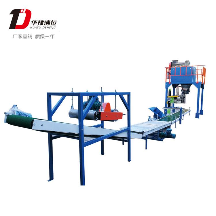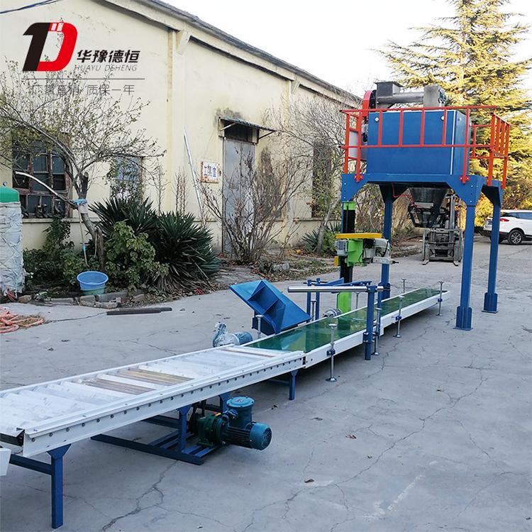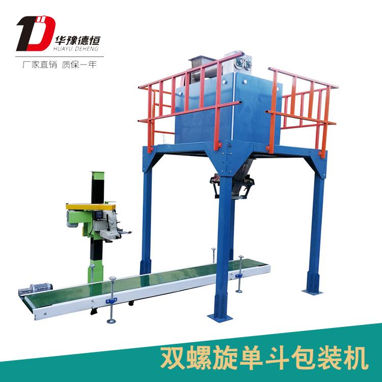 該系列定量包裝機組專為各類粉狀物料和小顆粒狀物料的定量包裝而設(shè)計,采用雙螺旋(快中慢三速)給料方式,通過傳感器控制變頻器使電機帶動螺旋,分級給料到計量斗內(nèi)。當計量斗內(nèi)物料充填到設(shè)定的重量后,螺旋停止給料。夾計量斗自動打開放料至包裝袋內(nèi),夾帶器打開,料袋通過輸送帶送走,由人工輔助縫包(封口)。