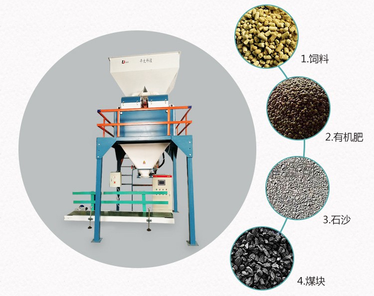 適合于各類混合物料型煤、生物顆粒(耐火材料澆注料)顆粒物料(飼料、石英砂)有機(jī)肥,粉粒、混合物料、冰塊、片狀(片堿等)塊狀物料和不規(guī)則物料/耐火材料的自動(dòng)定量包裝。