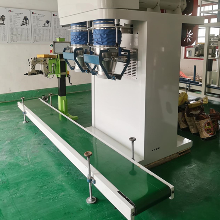 該系列定量包裝機(jī)組專為各類粉狀物料和小顆粒狀物料的定量包裝而設(shè)計(jì),采用螺旋(快中慢三速)給料方式,兩套加料系統(tǒng)、稱重系統(tǒng)和夾袋系統(tǒng)。一套控制系統(tǒng),通過傳感器控制變頻器使電機(jī)帶動(dòng)螺旋,分級給料到包裝袋內(nèi)。當(dāng)包裝袋內(nèi)物料充填到設(shè)定的重量后,螺旋停止給料。夾袋器自動(dòng)打開,兩個(gè)料袋同時(shí)通過輸送帶快速送走,由人工輔助縫包(封口)。